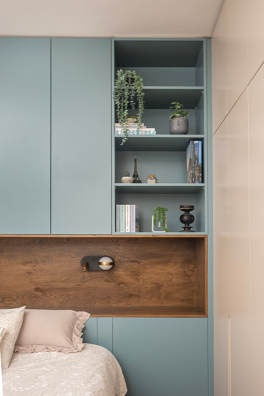השידות והארונות בחדר השינה עשויים מעץ מלא בגימור מוקפד, עם פרטים עיצוביים מורכבים כמו חפיפות, מסגרת מקושטת וידיות מעוטרות. הם מספקים מקום אחסון מגוון לבגדים ואביזרים.