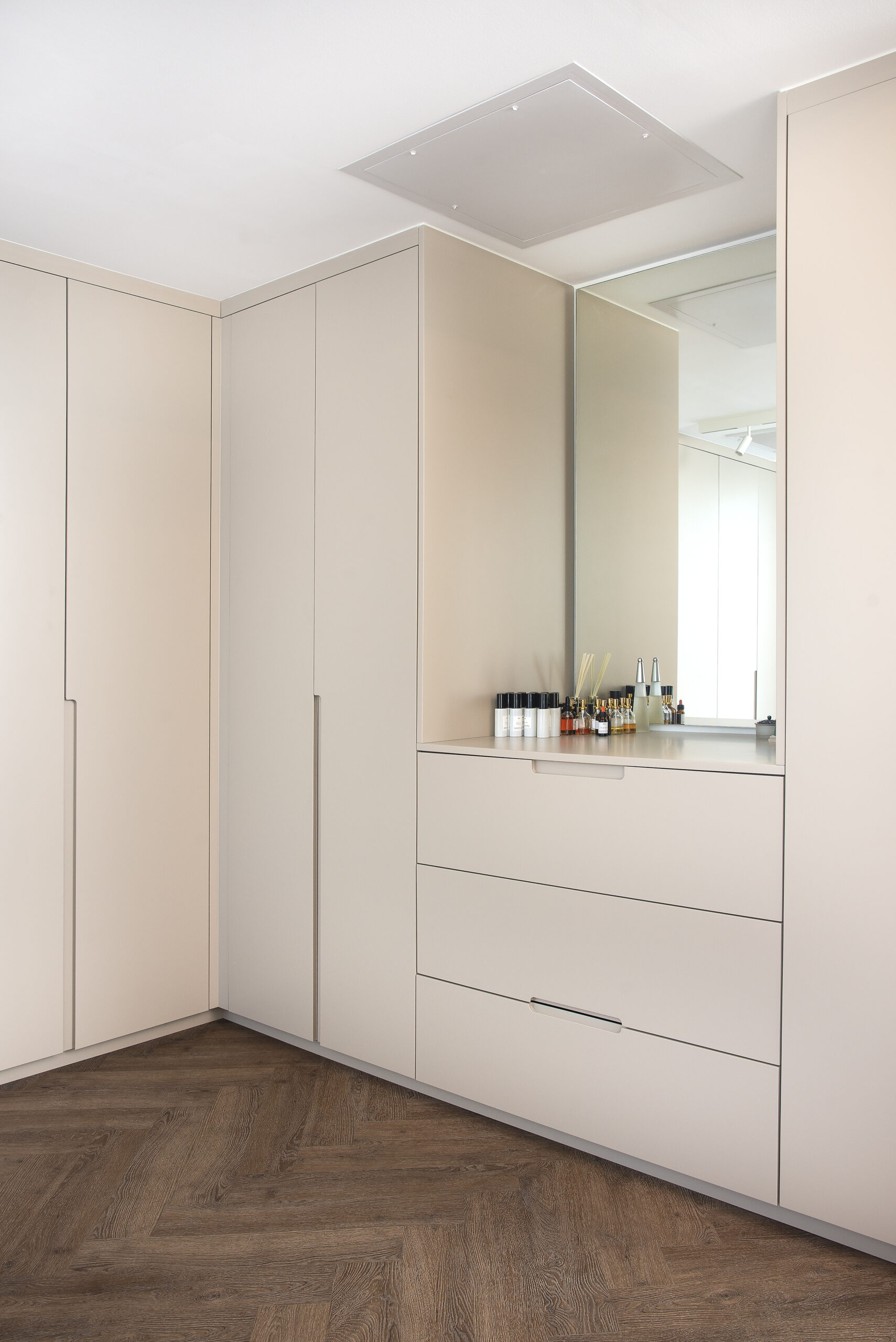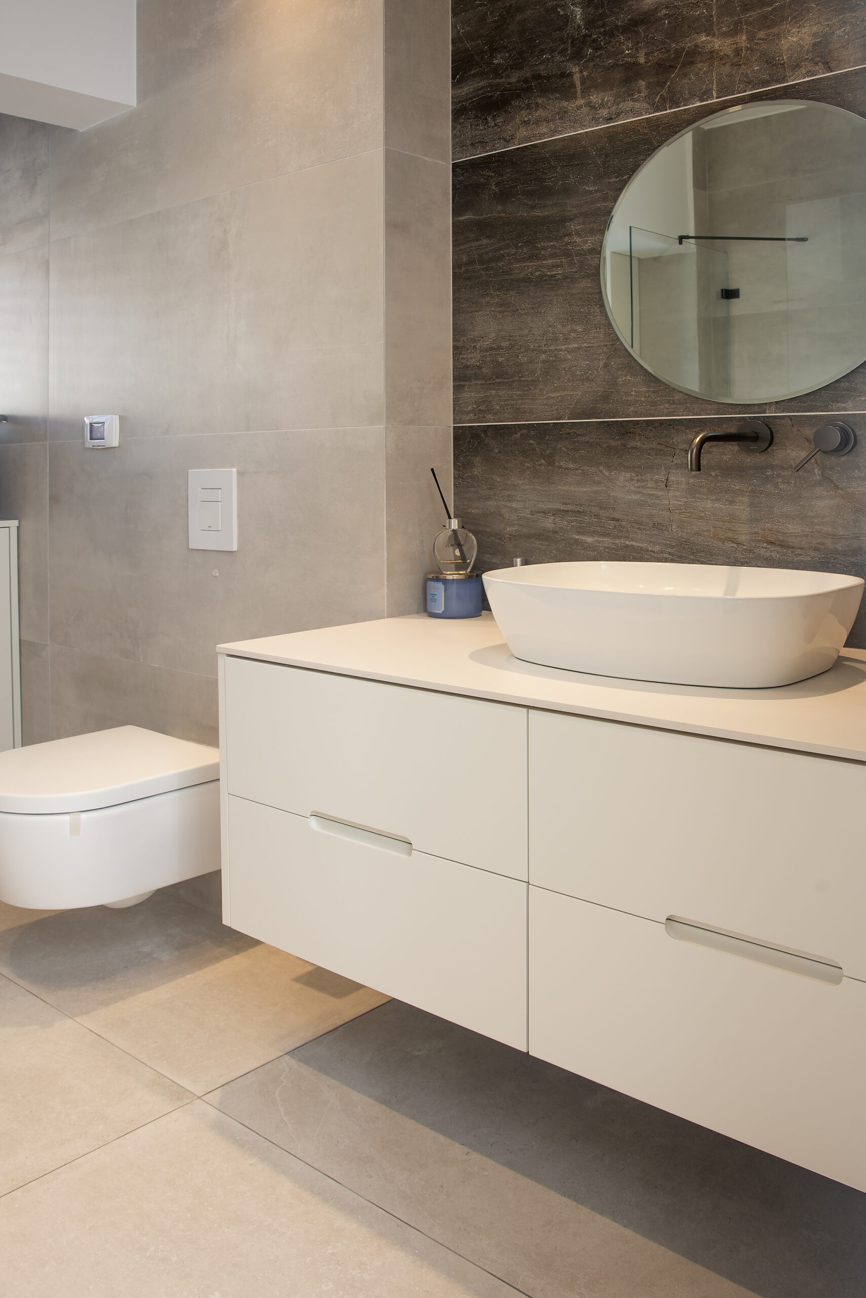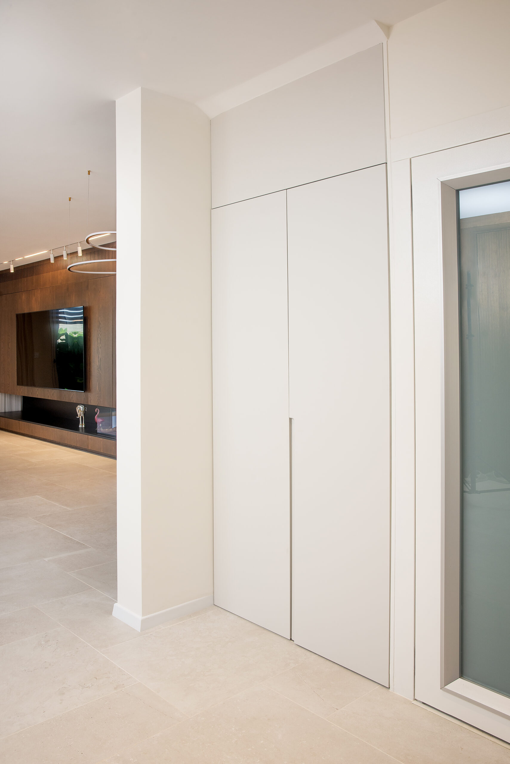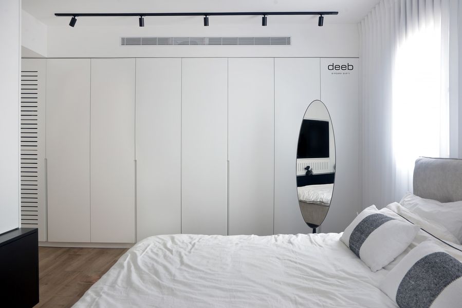 על הקירות, ניתן למצוא בצבעים נייטרליים או אפורים בהירים המעניקים אווירה מודרנית ומרווחת. ניתן להוסיף פס צבע עדין או דקורטיבי באחד מהקירות כדי להוסיף נגיעה מעניינת ויחודית.