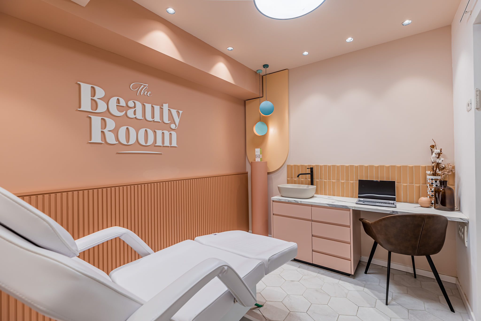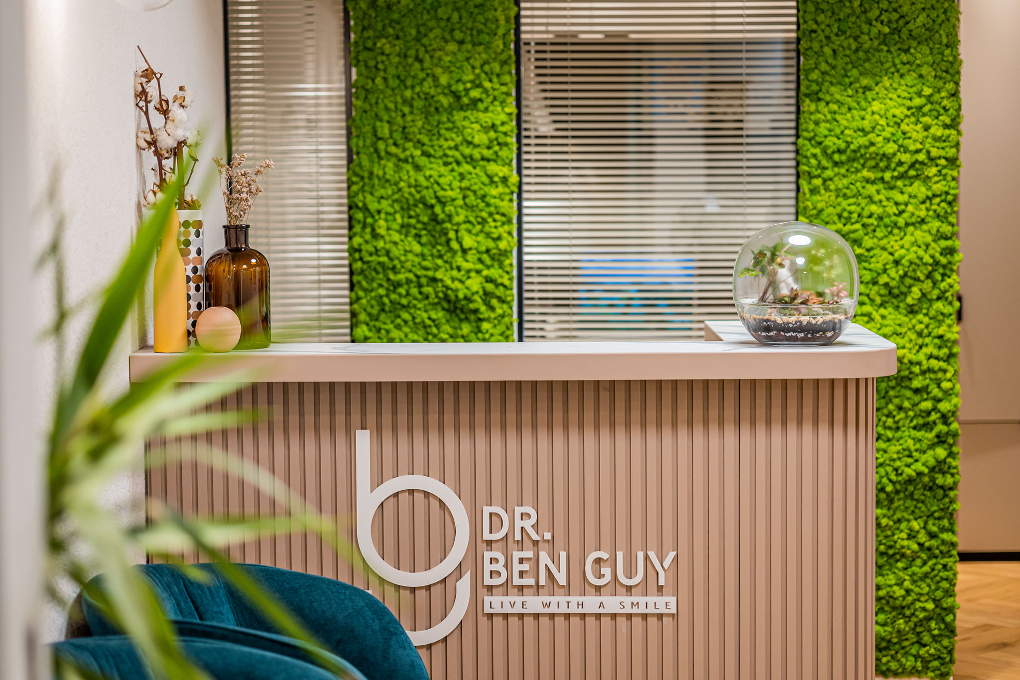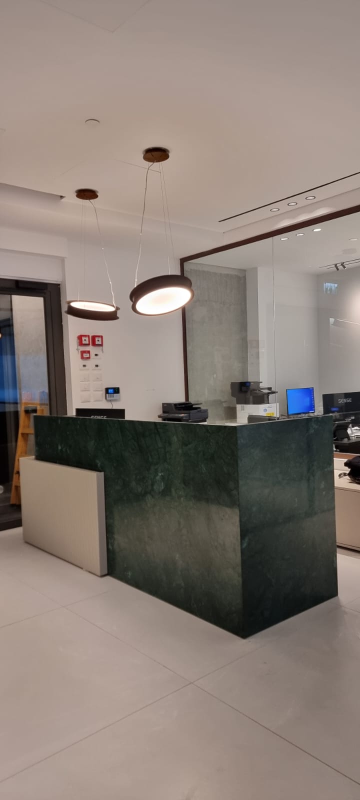 ייצור מותאם אישית של רהיטי קבלה כמו דלפקים, מקומות ישיבה ושולחנות לקבלת לקוחות במרכז החנות, חיפוי קירות מעץ.